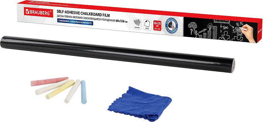 Пленка-доска самоклеящаяся меловая в рулоне черная 60х120см + 5 мелков и салфетка BRAUBERG 237838