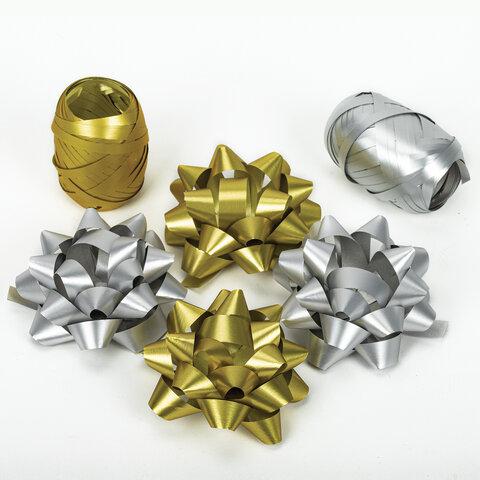 Бант-шар Золотая сказка 591850 набор 4шт /2 золото, 2 серебро, 2 ленты/ D-7,5см