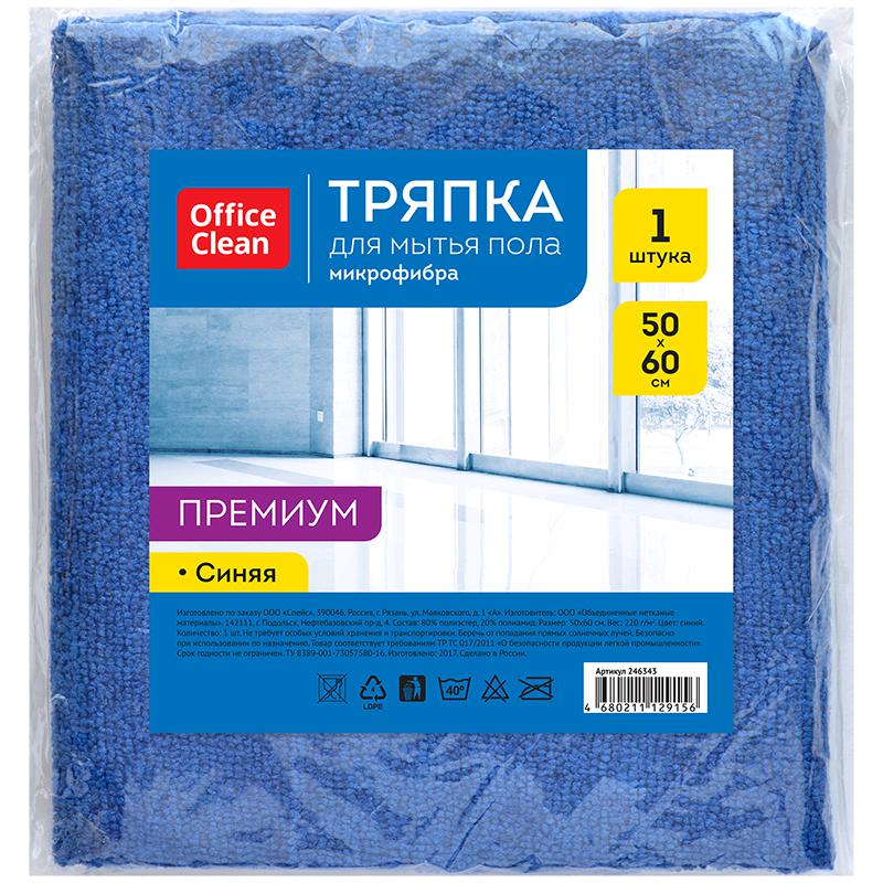 Тряпка д/пола OfficeClean 246343 "Премиум" 50*60см микрофибра