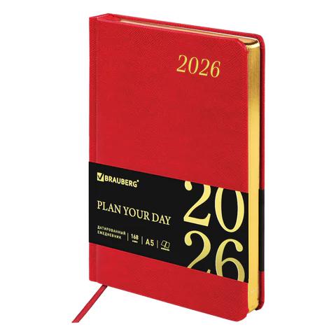 Ежедневник А5 2026г. Brauberg 117055 "Iguana" красный, кожзам, золотой срез