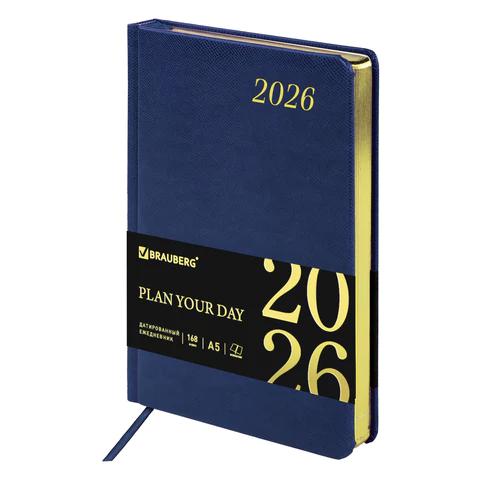 Ежедневник А5 2026г. Brauberg 117056 "Iguana" синий, кожзам, золотой срез