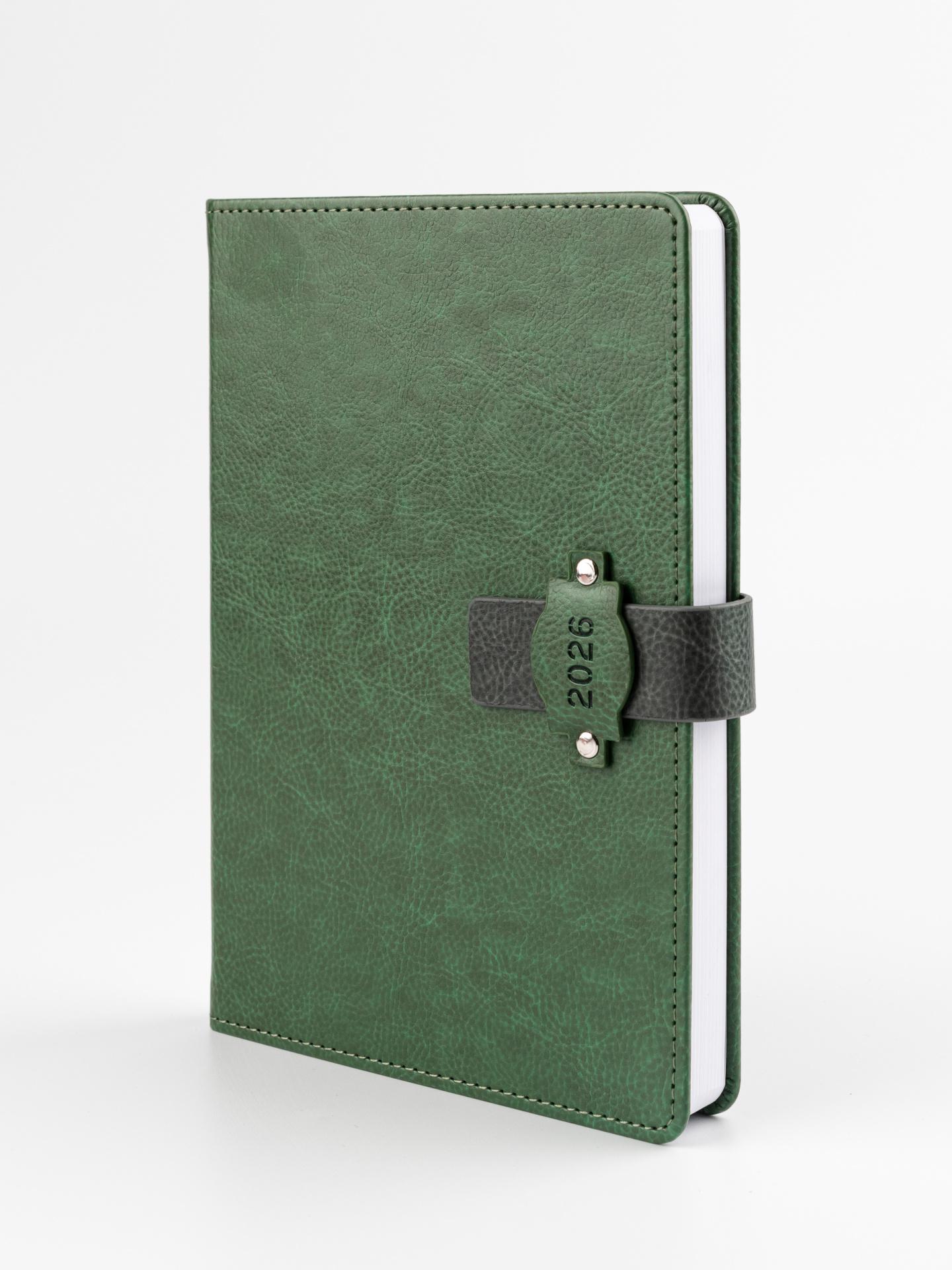 Ежедневник А5 2026г. Альфа-Тренд 310162 "Болонья" зеленый+темно-зеленый хлястик, тв. переплет