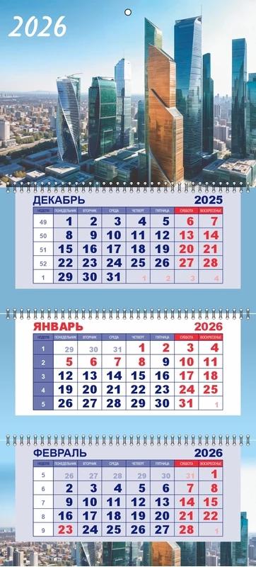 Календарь настенный на 2026г. Lamark 91743 Бизнес "Москва-Сити" квартальный 3-х блочный