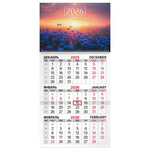 Календарь настенный на 2026г. Brauberg 116751 "Васильковый луг" 1 блок, 1 гребень, бугунок