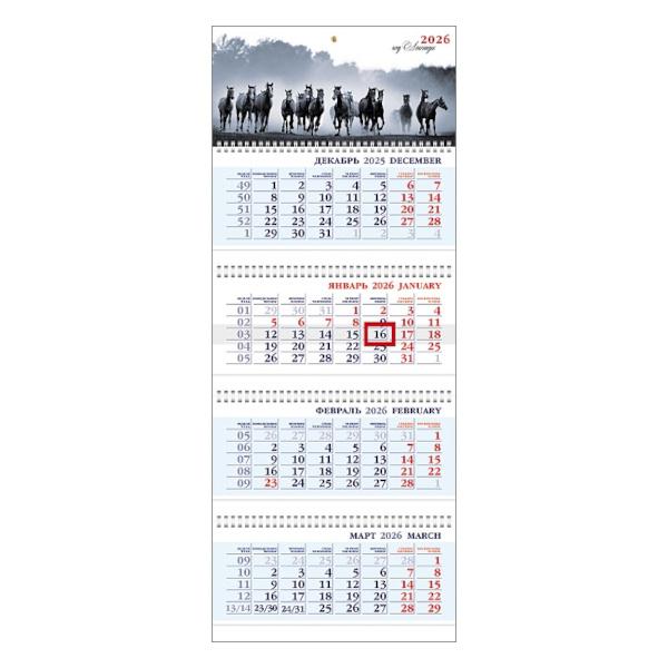 Календарь настенный на 2026г. Хатбер 4Кв4гр3_09502 ЛОШАДИ 4-х блочный 4 гребня