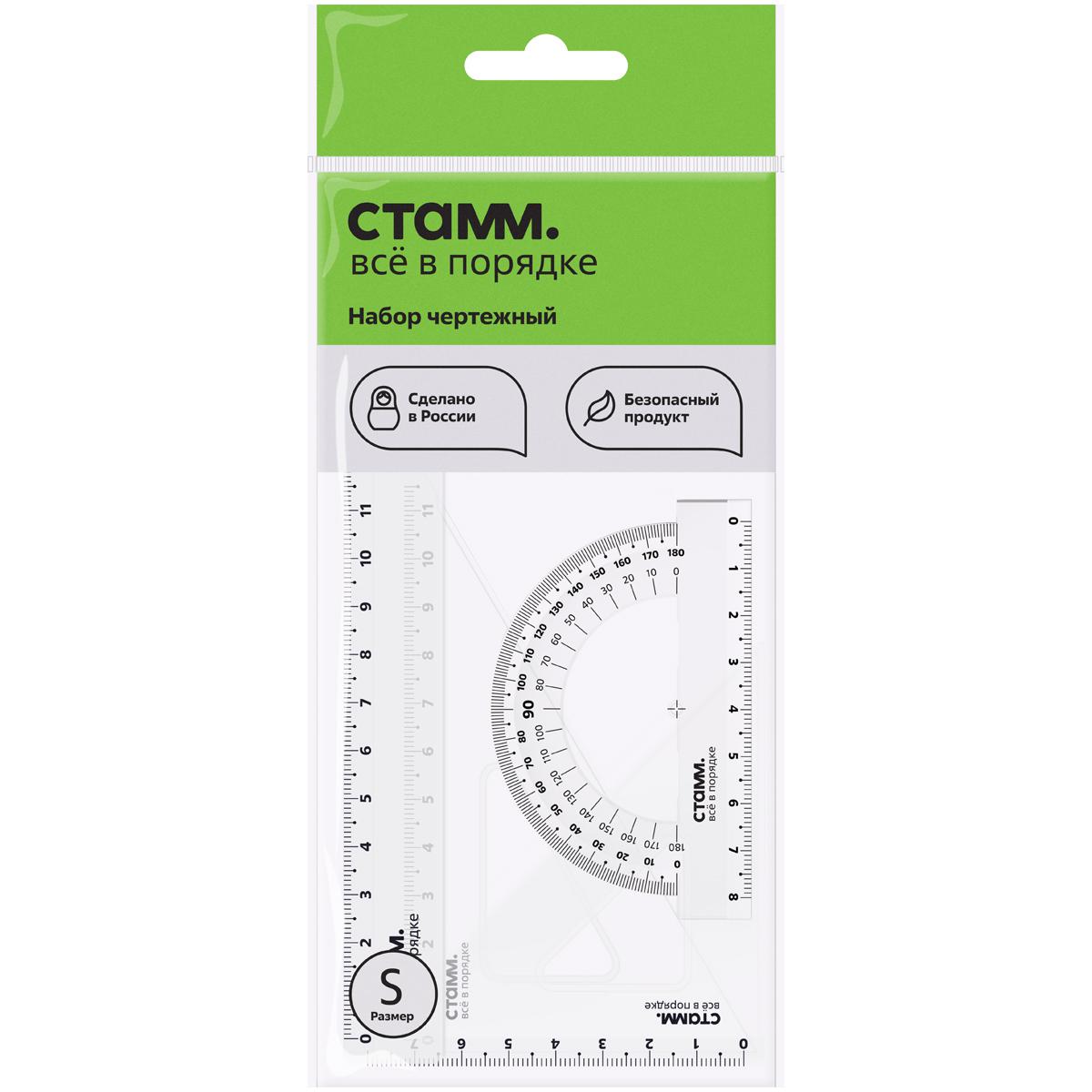 Набор чертежный Стамм НЧ-30524 малый прозрачн (линейка 16см, 2 угольн, транспор) 351439