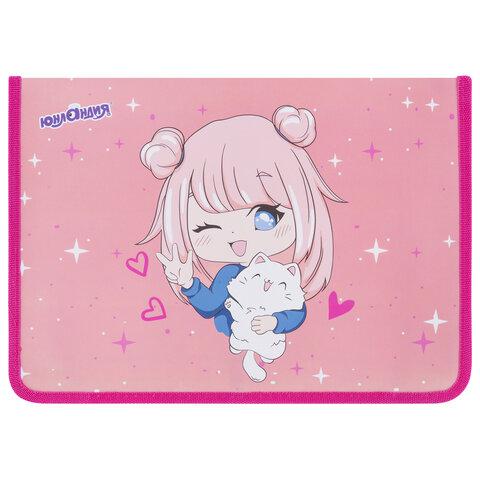 Папка д/труда А4 Юнландия 272222 "Anime pals" на молнии, откидная планка, пластик
