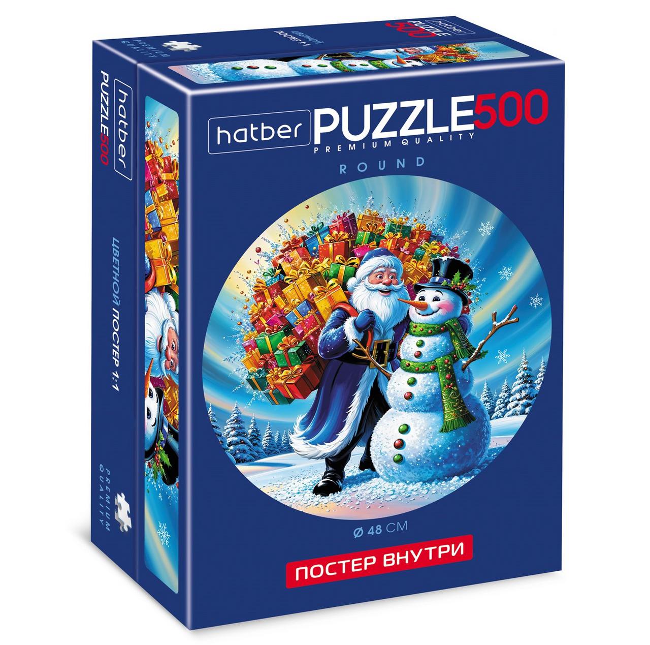 Пазлы Хатбер 32646 500 элементов А2 диам.480мм Дед Мороз и снеговик 089524