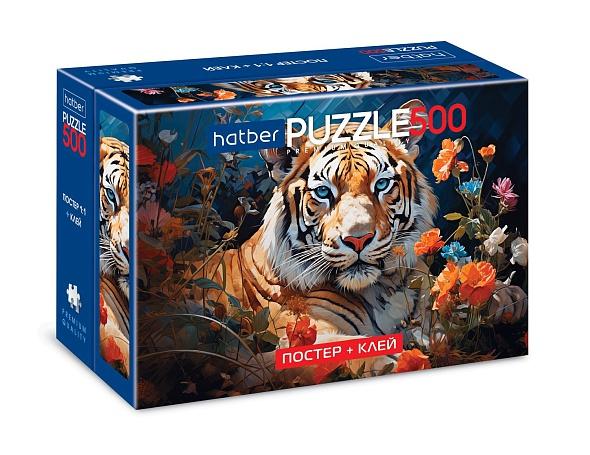 Пазлы Хатбер 30792 500 элементов А2 480х330мм Premium Взгляд тигра+Постер+клей с дозатором+шпатель 084785