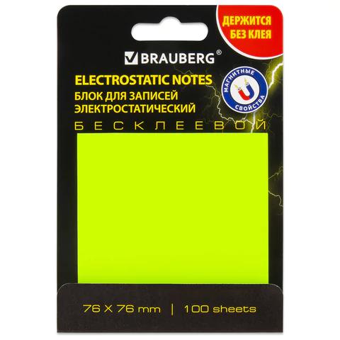 Блок липкий 76*76мм Brauberg 115210 желтый, 400л. бесклеевой электростатический