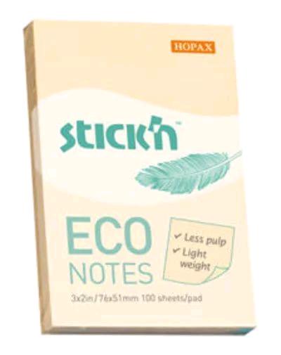 Блок липкий 51*76мм Hopax 21741 100л. ECO пастель желтый 60г/м2 412350