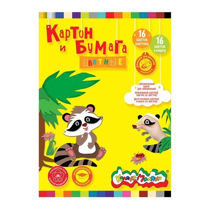 Картон цветной А4 16л. 16цв. + 16л. 16цв. бумага цветная Каляка-Маляка НКБКМ16/16 178607