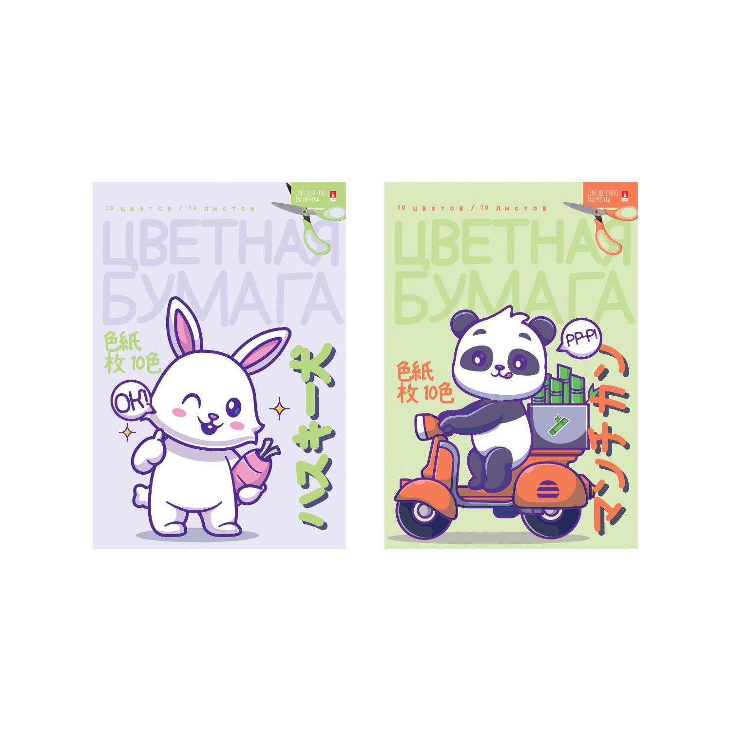 Бумага цветная А4 10л. 10цв. Альт 82698 "Мультики" офсет, ассорти