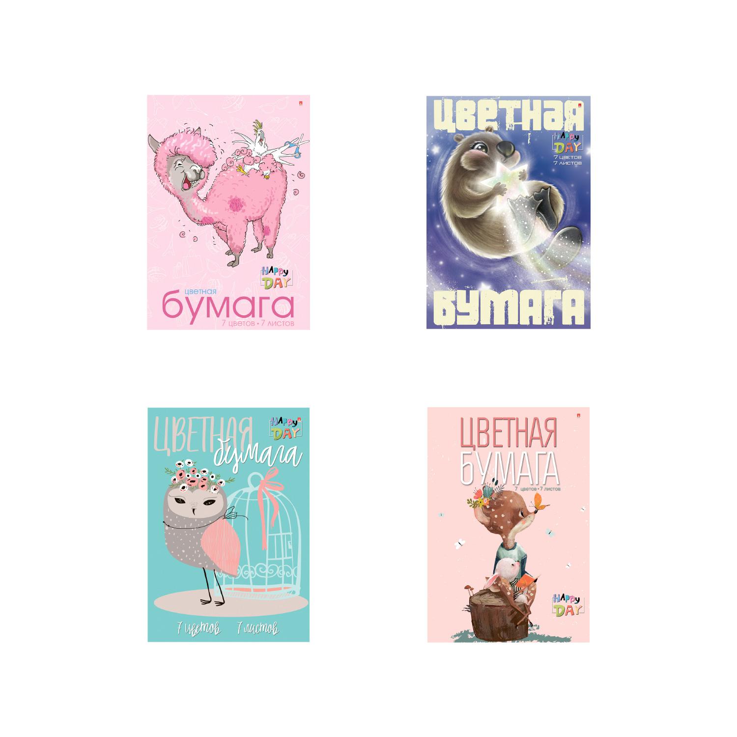 Бумага цветная А4 7л. 7цв. Альт 11-407-119 "Мультики" немелованная, ассорти