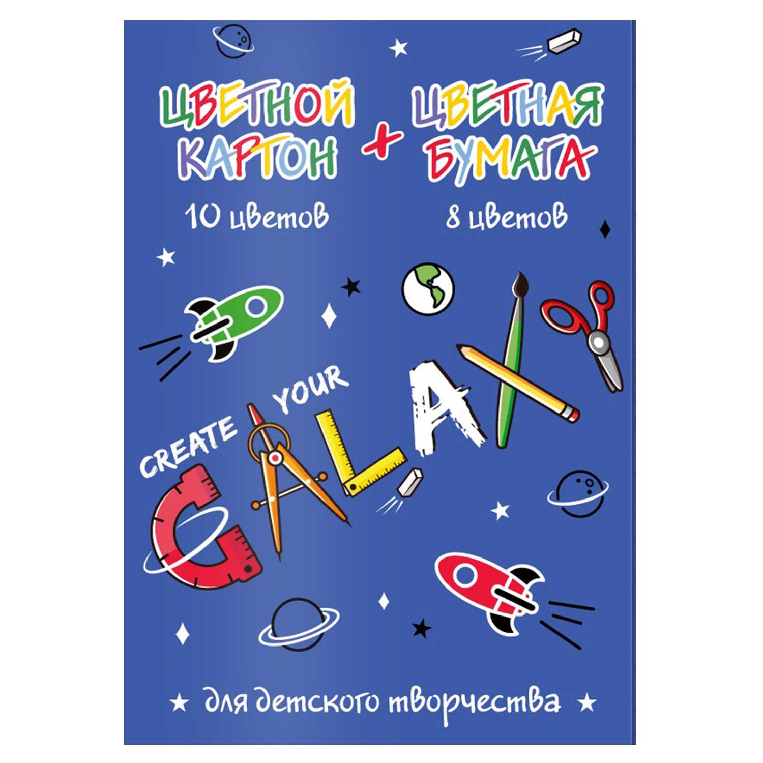 Картон цветной А4 26л. 10цв. + 8цв. бумага цветная Феникс 60416 "Гэлакси" на склейке