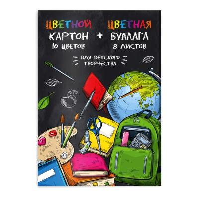 Картон цветной А4 26л. 10цв. + 8цв. бумага цветная Феникс 57187 "Школа" на склейке