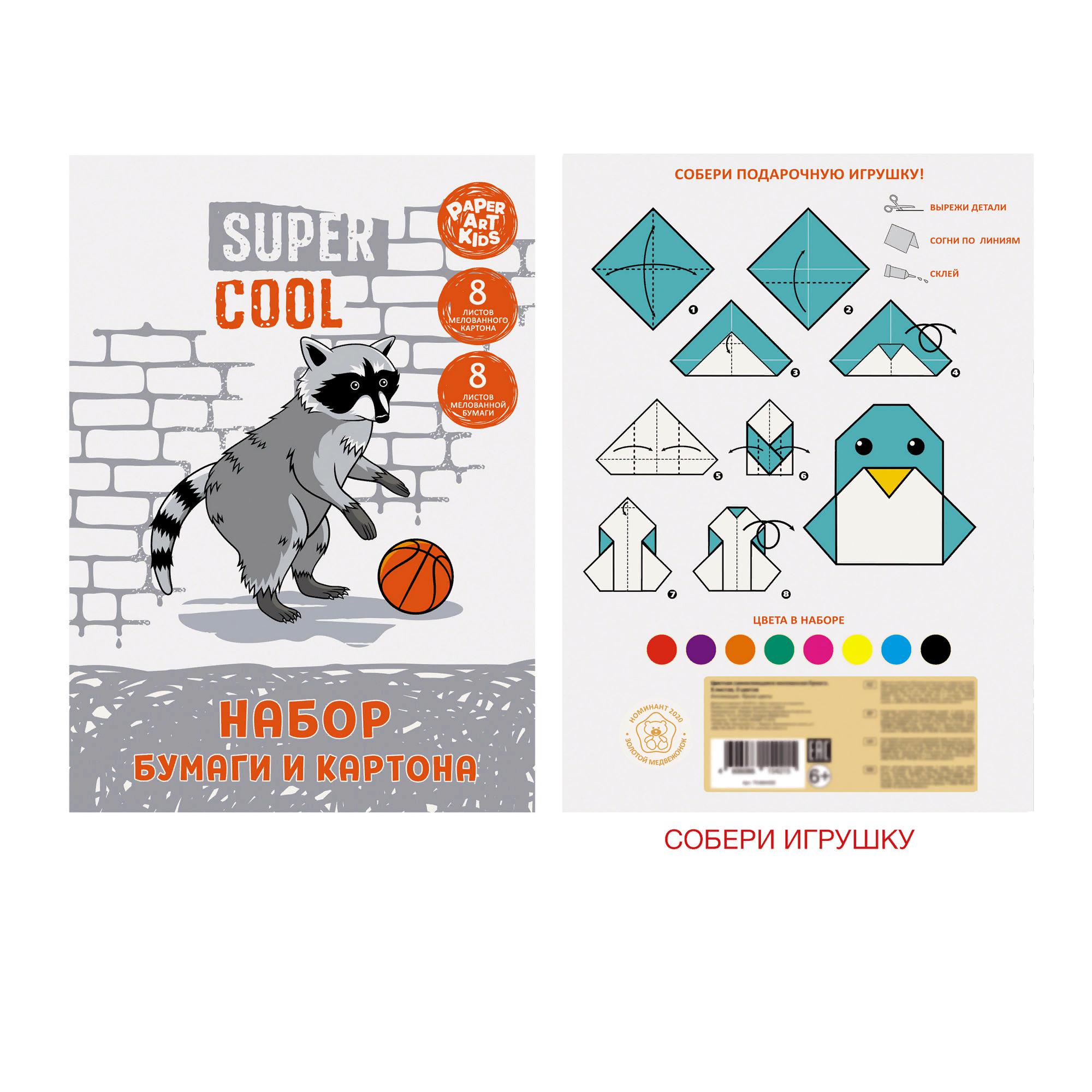 Картон цветной А4 8л. + 8л. бумага цветная Канц-Эксмо НЦКБМ168548 "Енот-баскетболист" мелованный