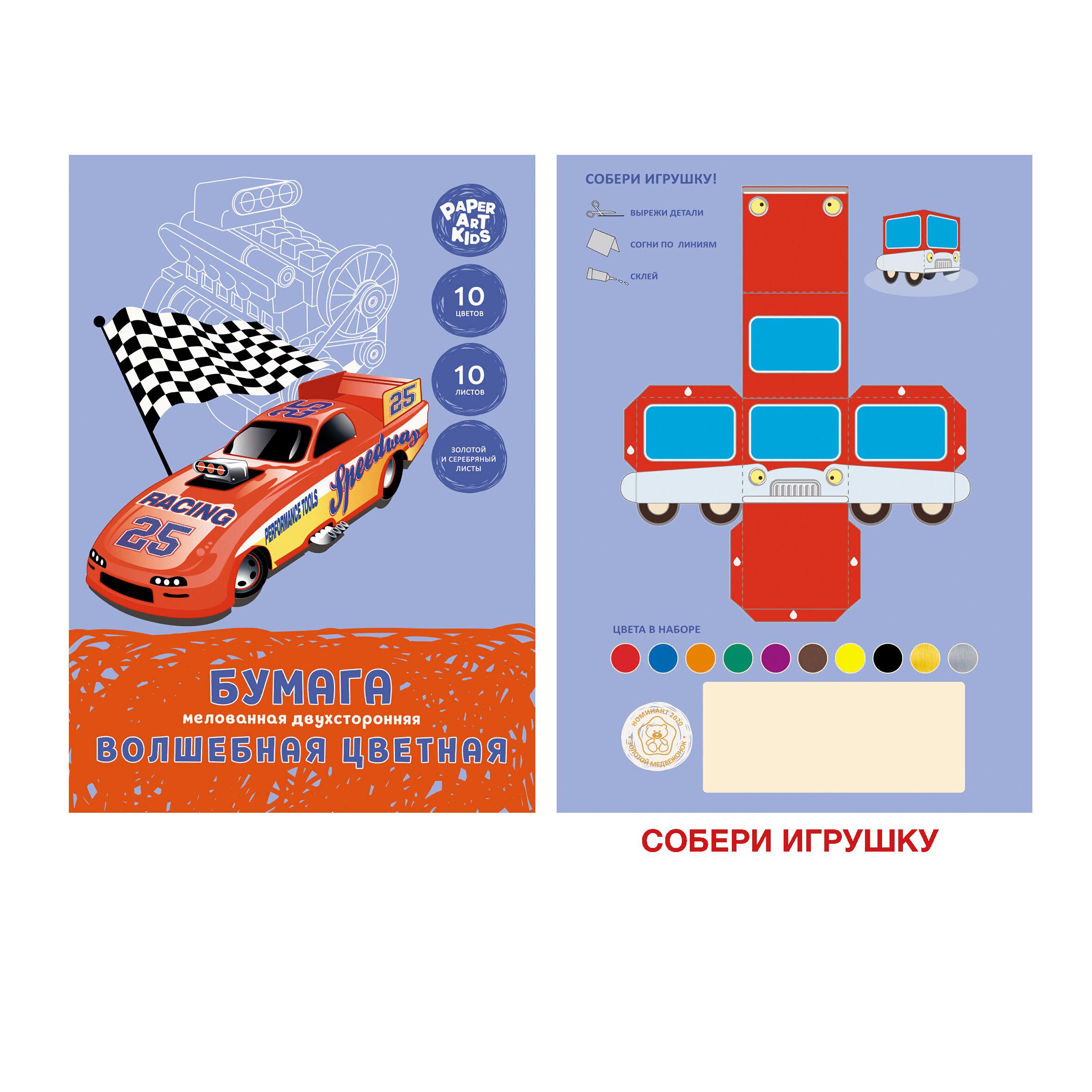 Бумага цветная А4 10л. 10цв. Канц-Эксмо ЦБВМ21010383 "Победитель гонок" двустороняя, мелованная
