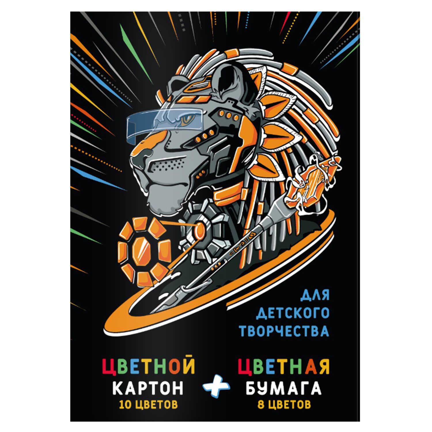 Картон цветной А4 26л. 10цв. + 8цв. бумага цветная Феникс 60419 "Кибер животные" на склейке