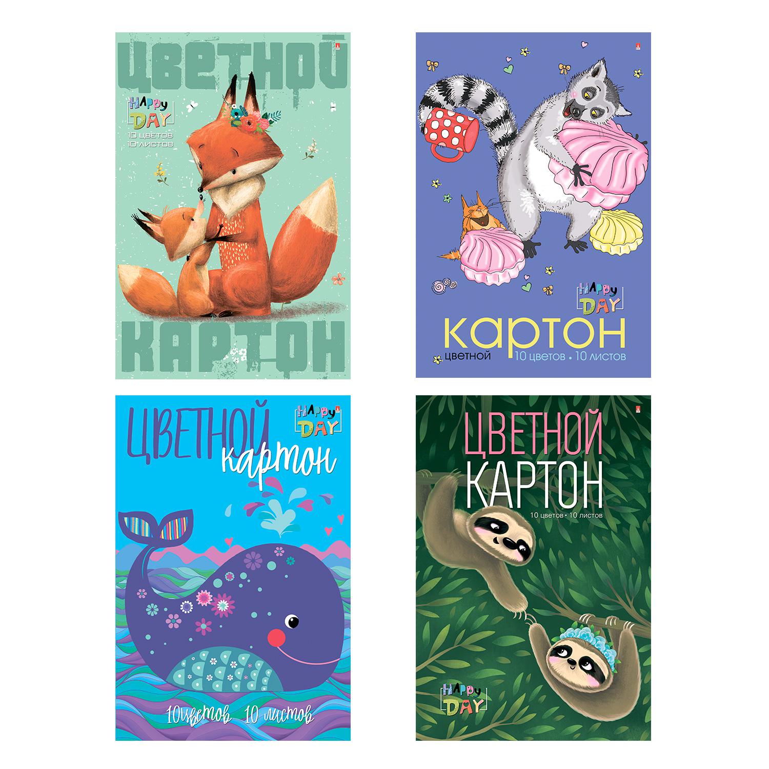 Картон цветной А4 10л. 10цв. Альт 82697 "Мультики" немелованный, 4 вида