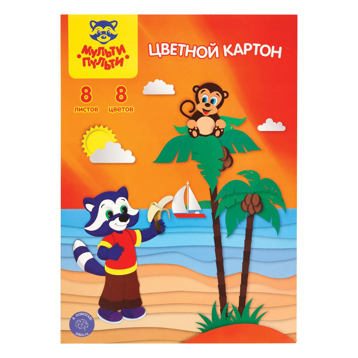 Картон цветной А4 8л. 8цв. Мульти-Пульти КЦнм8-8_13975 "Приключения Енота" немелованный 250432
