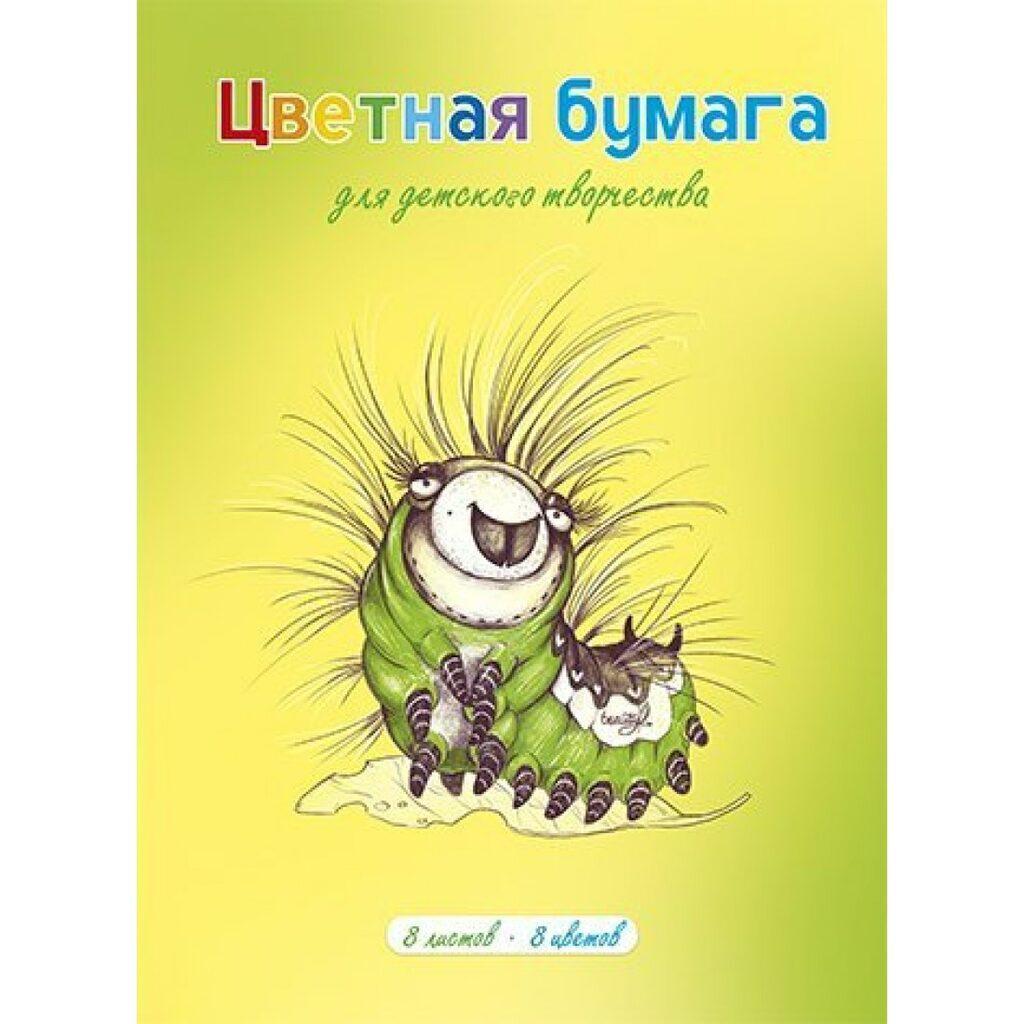 Бумага цветная А4 8л. 8цв. Альфа-Тренд 130029 "Гусеничка" мелованная, на скобе