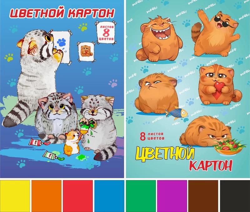 Картон цветной А4 8л. 8цв. Lamark 90647 "Кот Манул" немелованный, ассорти