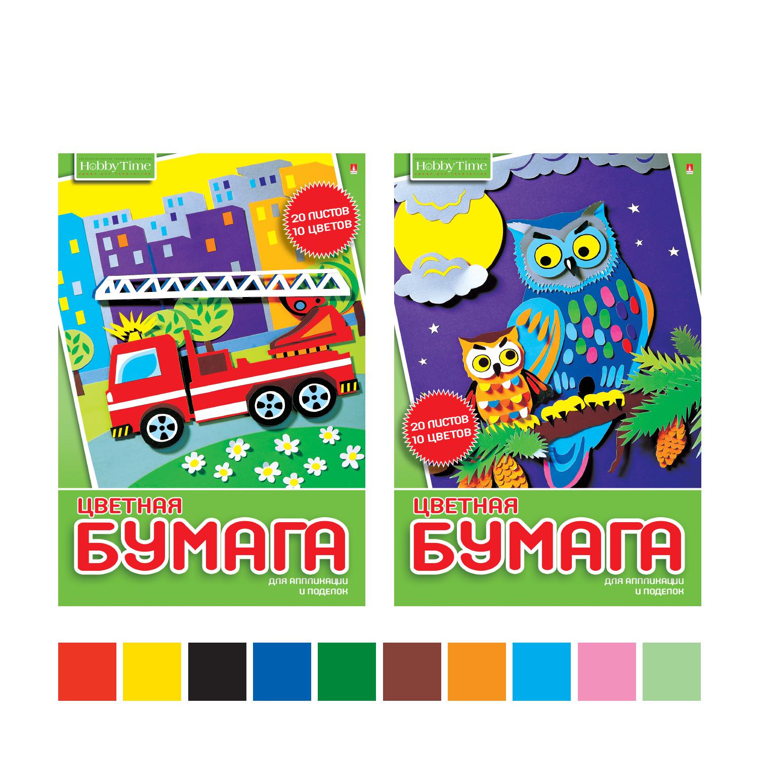 Бумага цветная А4 20л. 10цв Альт 11-420-249 "Хобби Тайм" мелованная, 2 вида