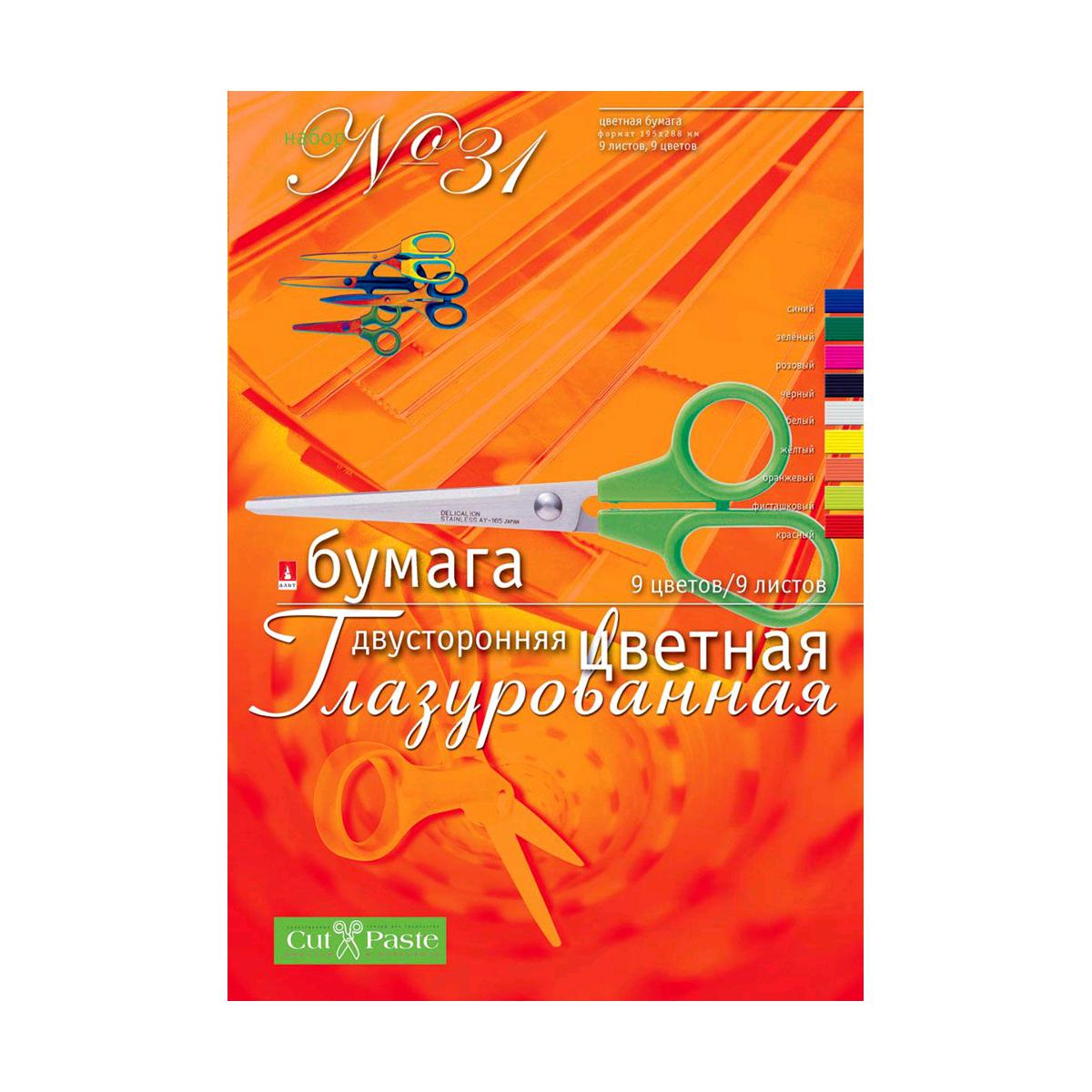 Бумага цветная А4 9л. 9цв. 11-409-60 "Глазурованная" двусторонняя Набор №31 /Альт/
