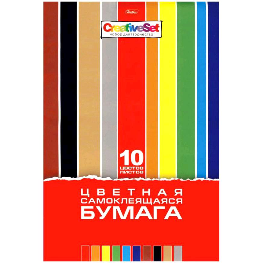 Бумага цветная самоклеящаяся А4 10л. 10цв. Хатбер 10Бц4с_05934 "Creative Set"