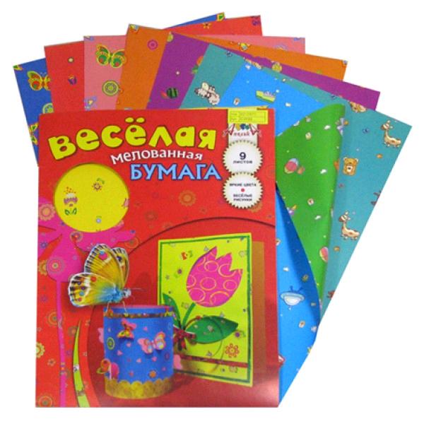 Бумага цветная А4 9л. 9цв. С0393-02 "Бабочка" Веселая" двусторонняя мелованная /Апплика/