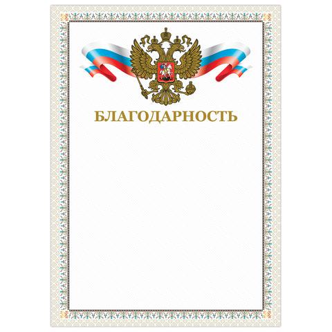 Грамота 128346/126546 БЛАГОДАРНОСТЬ А4, мелов картон, конгрев, Бежевая рамка, BRAUBERG