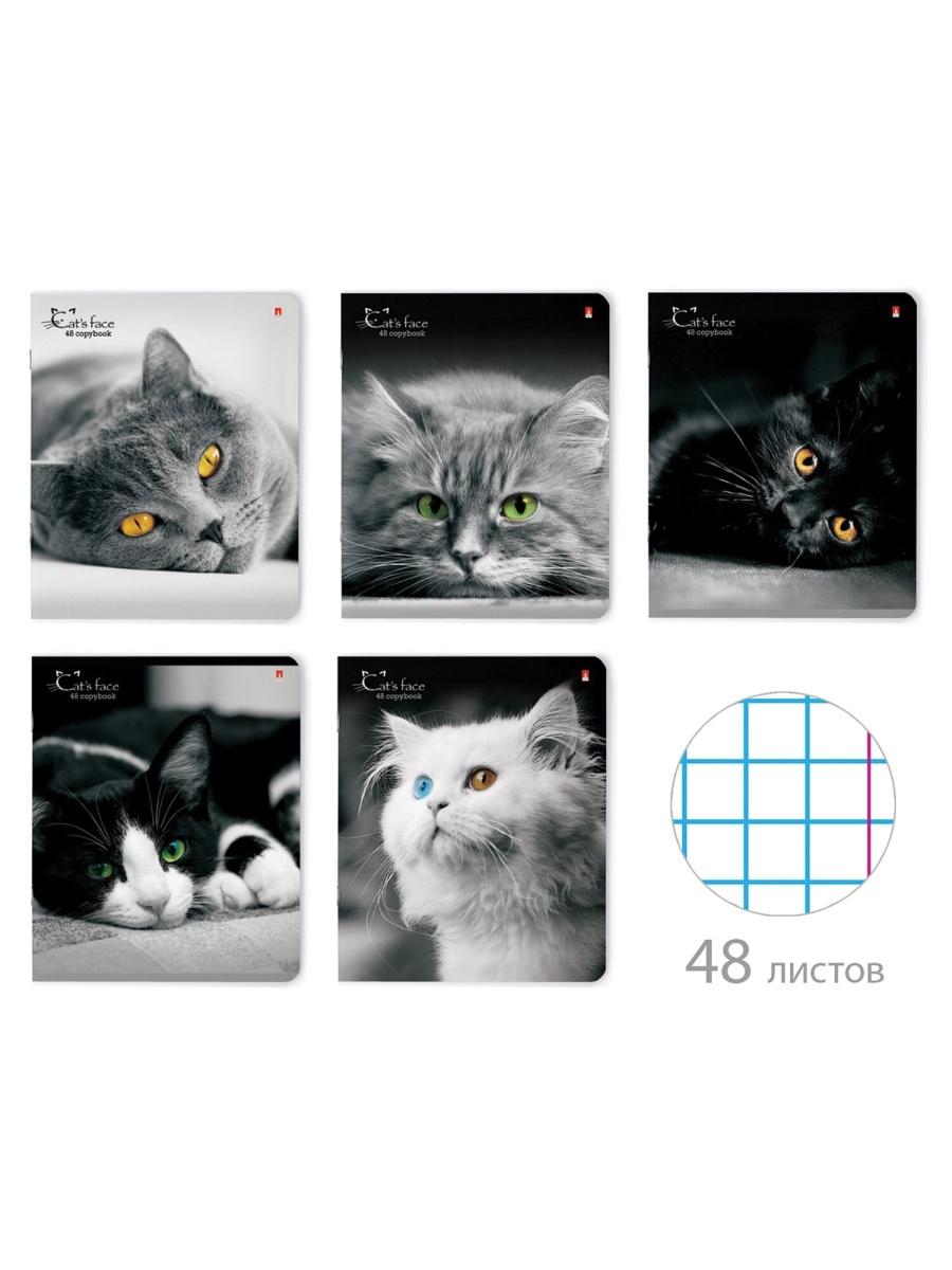 Тетрадь 48л. Альт 7-48-1019 "Кошки. Яркий взгляд" клетка, ассорти