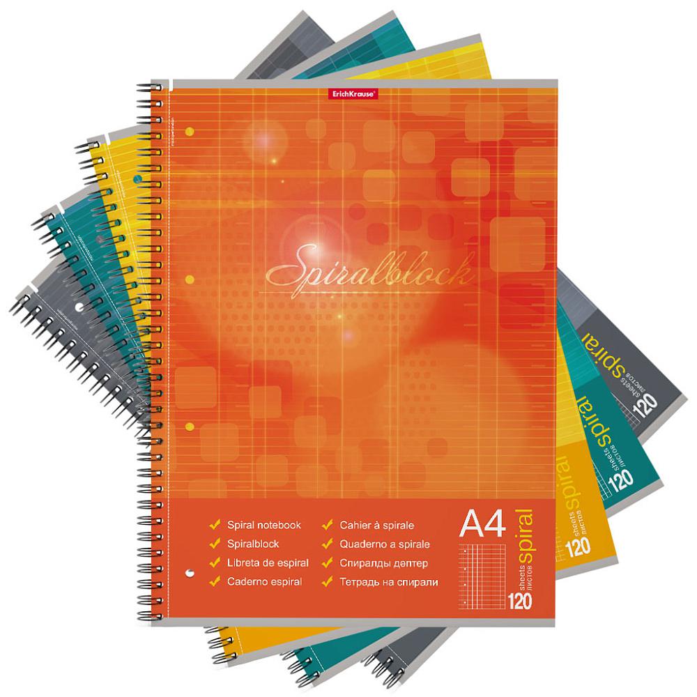 Тетрадь 120л А4 ErichKraus 58421 клетка "Spiralblock" на спирали, ассорти