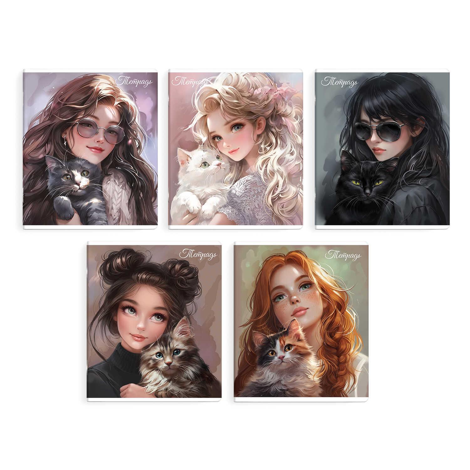Тетрадь 48л Феникс 68547 "Красотка с котиком" клетка, ассорти