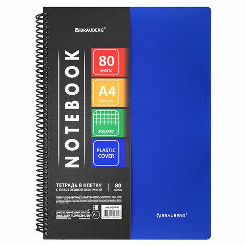 Тетрадь 80л. А4 Brauberg 404741 "Metropolis" клетка, синяя, пластиковая обложка, на спирали