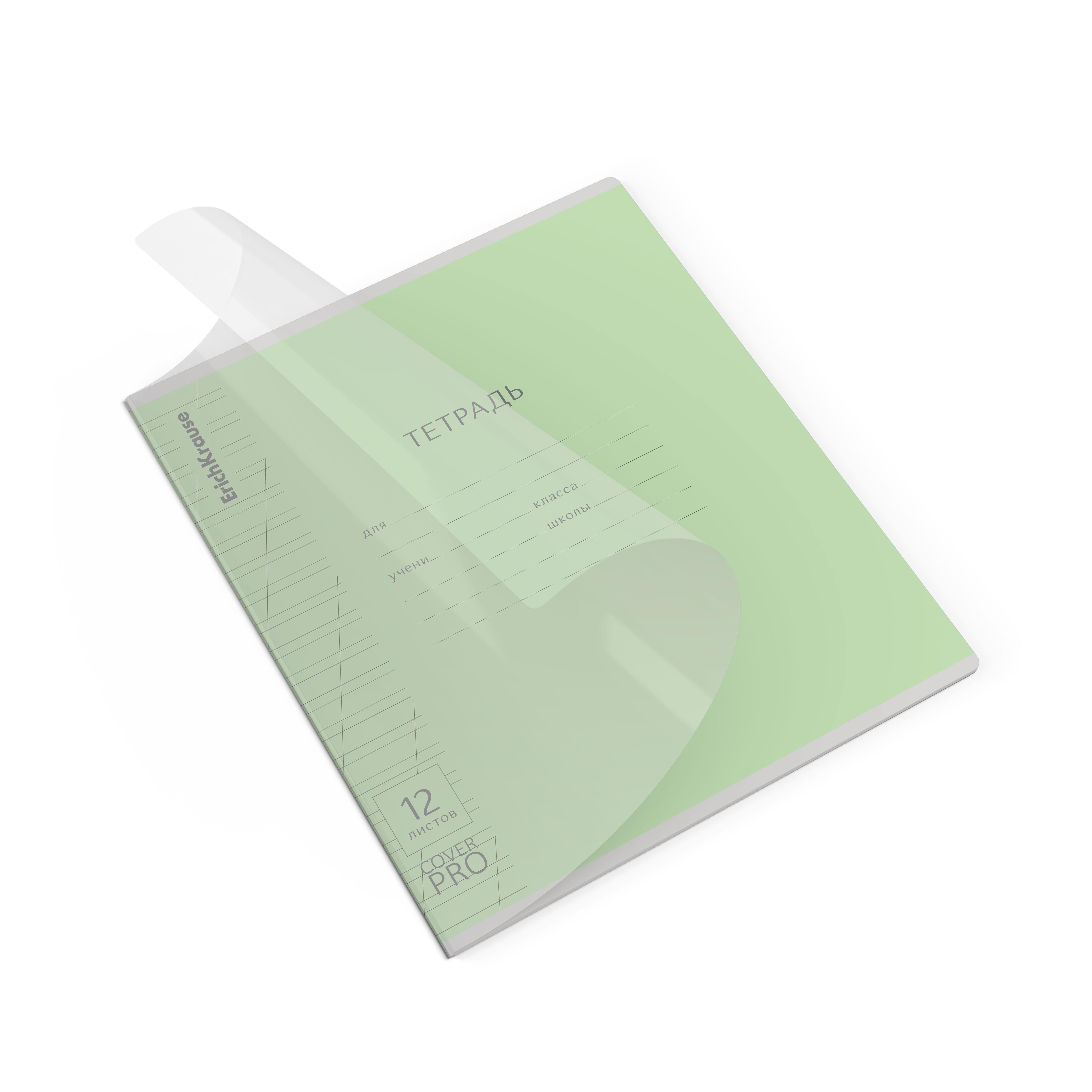 Тетрадь 12л. косая лин. "Классика" 62180 CoverPrо зеленая, с пластиковой обложкой /Полиграфика/