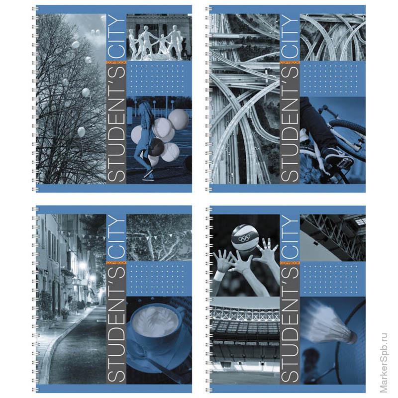 Тетрадь 60л. Полиграфика 37625 клетка "Student's City" клетка на спирали