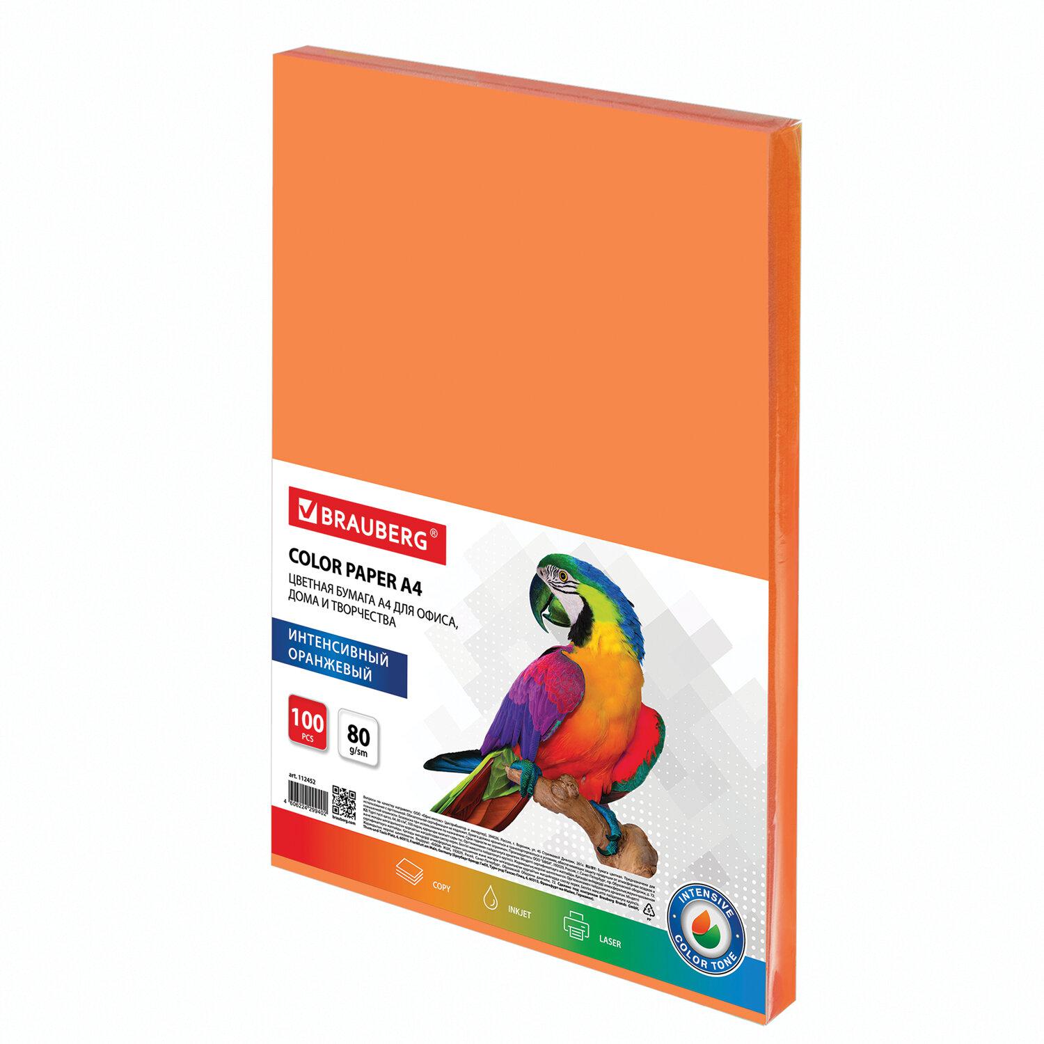 Бумага Brauberg A4, 80г/м, 100л, интенсив оранжевая 112452