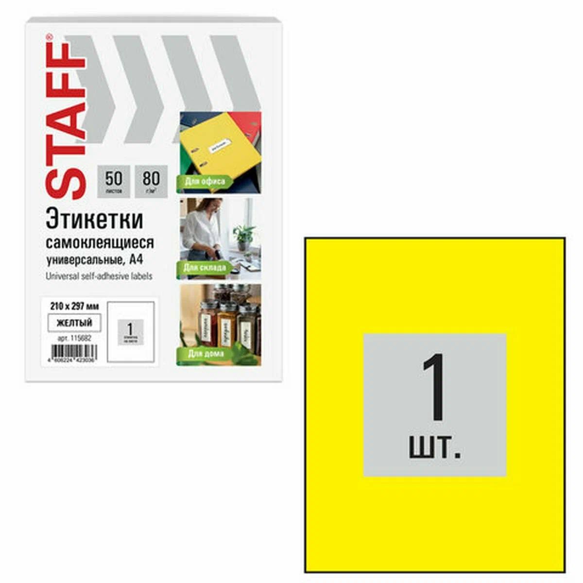 Бумага самокл. А4 50л 80г желтая STAFF BASIC 115682