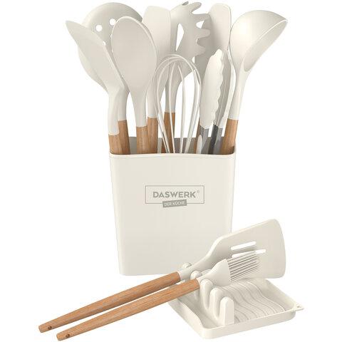 Набор кухонный Daswerk 608196 силиконовый с деревянными ручками, Молочный, 13 в 1 Самсон