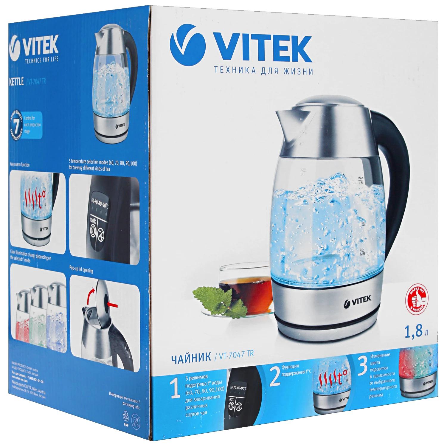 Электрочайник VITEK 7047 стекло 1,8л, подсветка, с поддержанием температуры