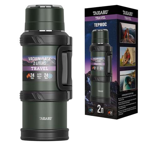 Термос TAIGARU SUS304 нержавеющая сталь 2,0л, 2 кружки, ручка, ситечко, темно-зеленый С700316