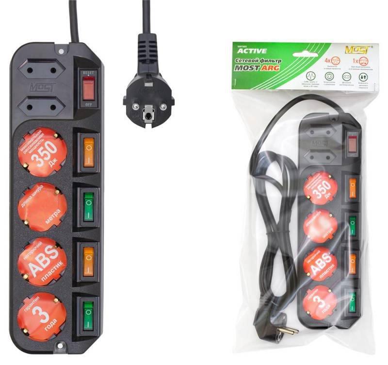 Фильтр сетевой 3,0м 6 розеток MOST A16 черный упак п/э 1033470