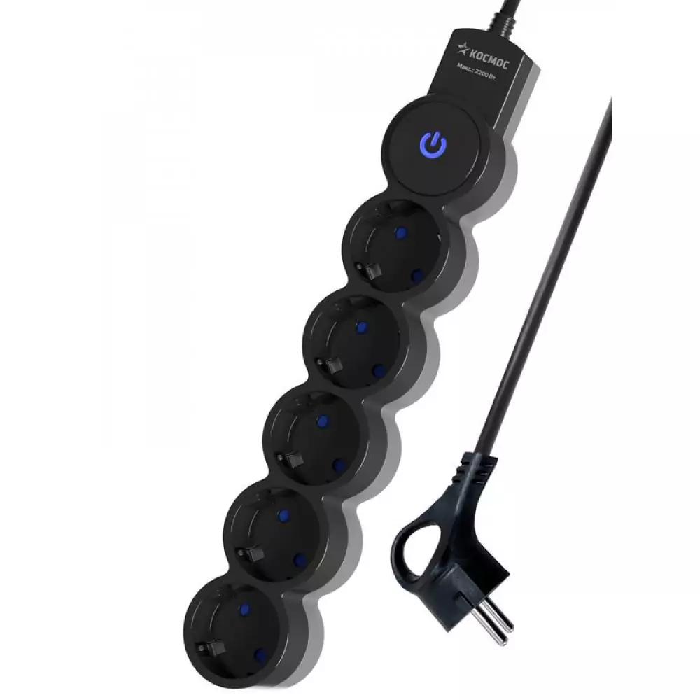 Удлинитель 6гн 5м (з) выкл. КОСМОС 10А 2200Вт черный 3х0,75 41563
