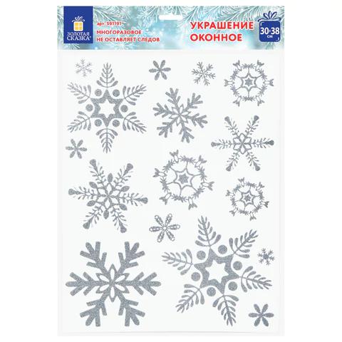 Украшение д/окон и стекла Золотая Сказка 591191 "Снежинки" 1 лист, 30х38см, многоразовые, серебро