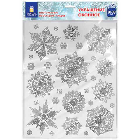 Украшение д/окон и стекла Золотая Сказка 591928 "Снежинки" 1 лист, 30х38см, многоразовые, серебро, двусторонние