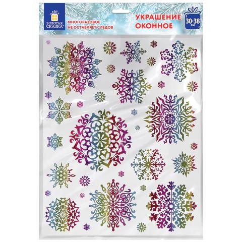 Украшение д/окон и стекла Золотая Сказка 591929 "Снежинки" 1 лист, 30х38см, многоразовые, голография, двусторонние