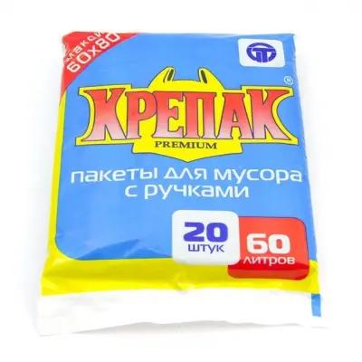 Мешок для мусора 60л. 20шт. 13мкм с ручками (Крепак)