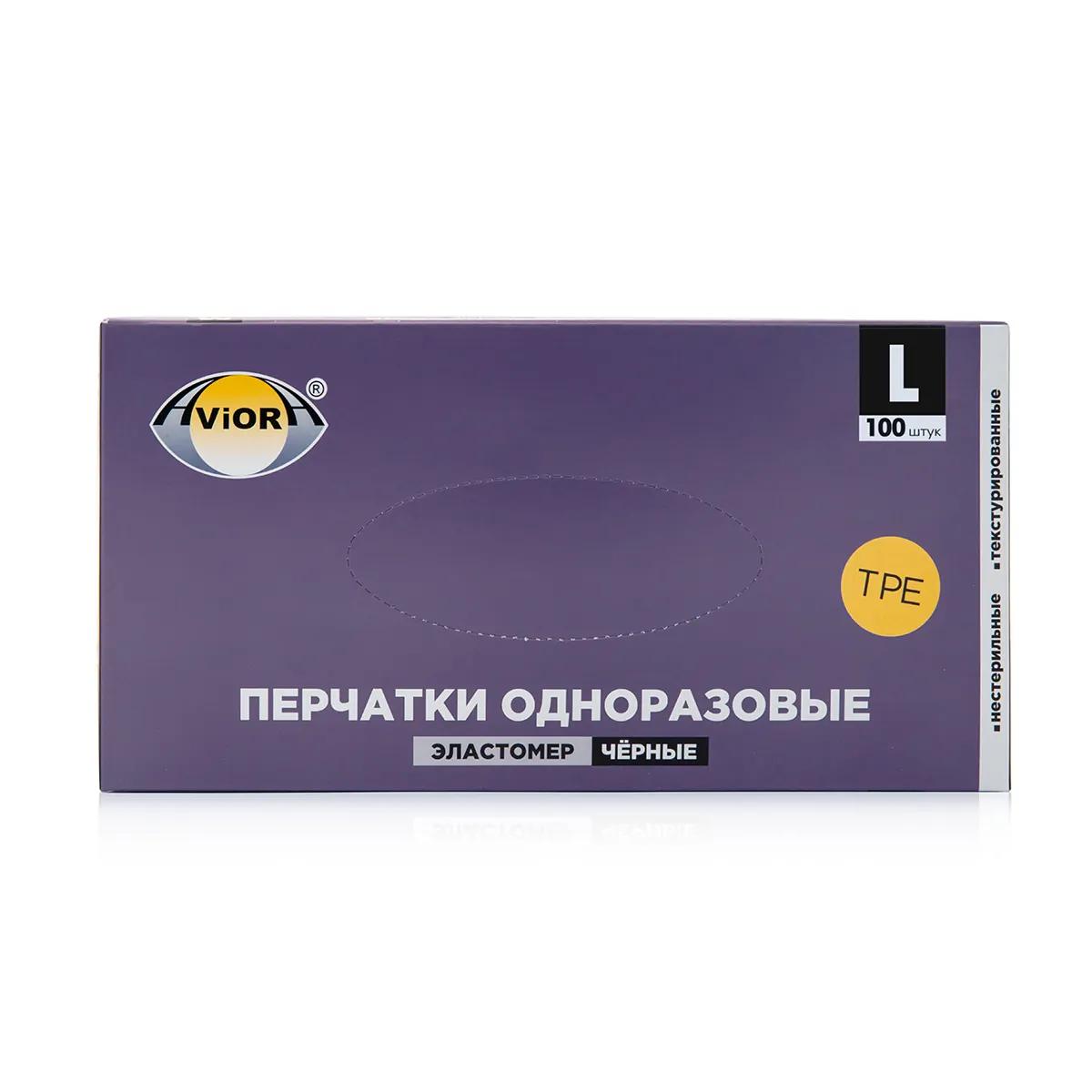 Перчатки эластомер однораз ЧЕРНЫЕ 100шт/уп р.L, AVIORA 402-884